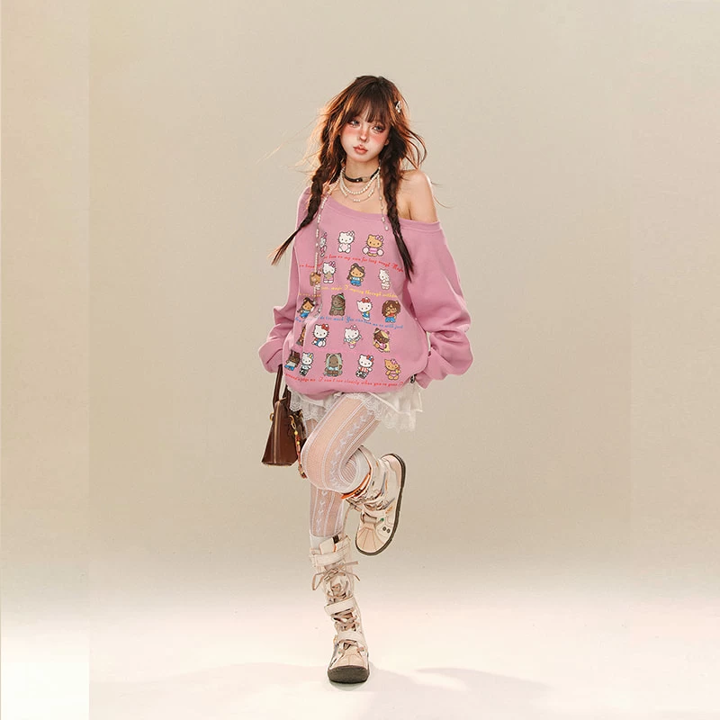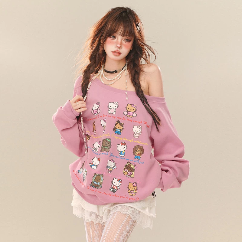 Embrace your inner kawaii fashionista with our delightful Hello Kitty printed sweatshirt, designed for those who cherish a sweet and playful style. This loose-fitting piece features an adorable Hello Kitty motif that adds a touch of whimsy to any outfit, making it perfect for casual outings or cozy days at home. Crafted from a blend of 70% polyester fiber and 30% other materials, this Kawaii sweatshirt provides the ideal balance of comfort and durability, ensuring you can wear it season after season.
