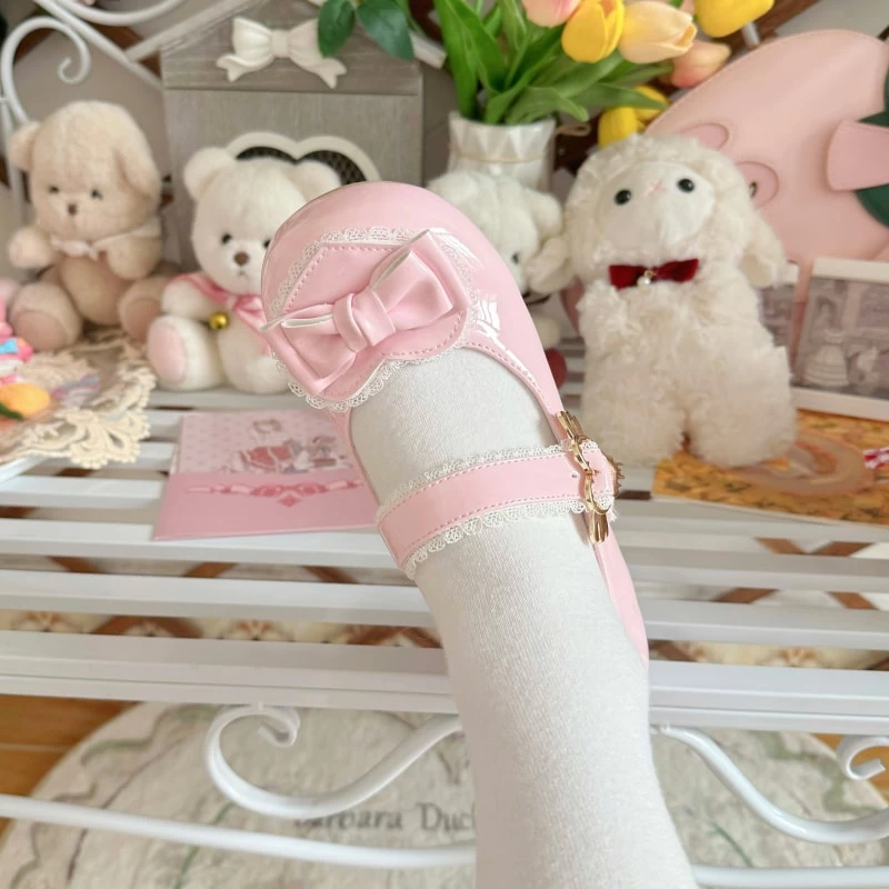 Crafted from premium patent leather PU and a soft microfiber inner lining, these Lolita shoes boast durability and a luxurious feel against your skin. The standout feature is undoubtedly the heart lace bow design that adds an adorable touch while drawing attention to your unique style. Available in an array of enchanting colors—beige, black, blue, pink, red—and even playful combinations like blue and pink—there’s a pair to match every wardrobe and occasion.