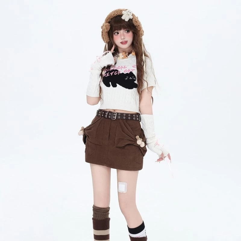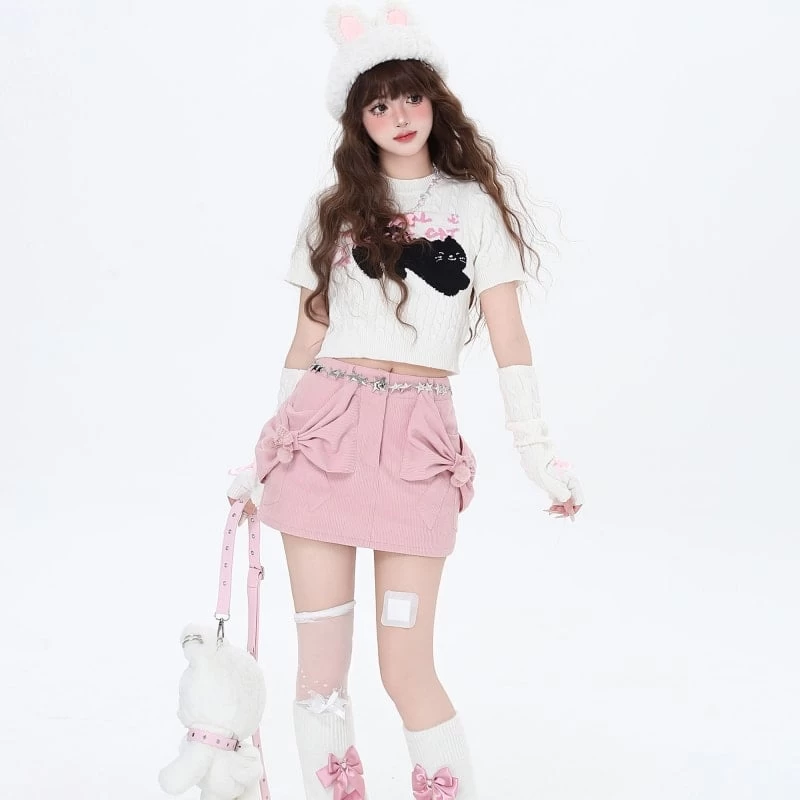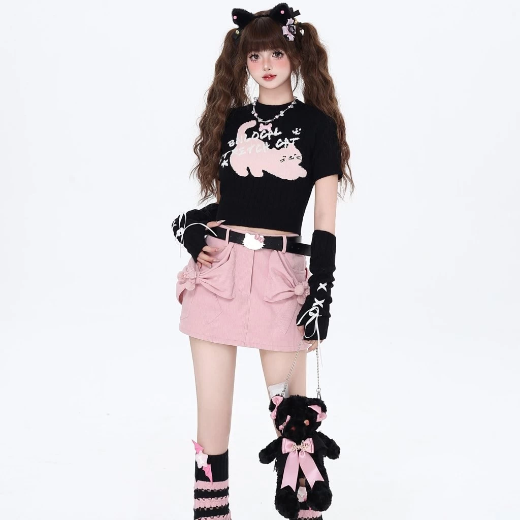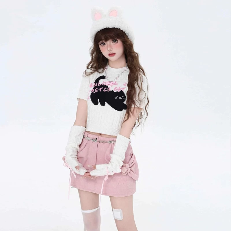 Step into a world of adorable fashion with our Kawaii Sweet Soft Girl Style Cartoon Kitten Embroidered Sweater. This charming piece combines cute kitten embroidery with the sleek sophistication of a slim, form-fitting design perfect for early autumn days. Available in classic white and black, it effortlessly blends playfulness and style to create an unforgettable look.
