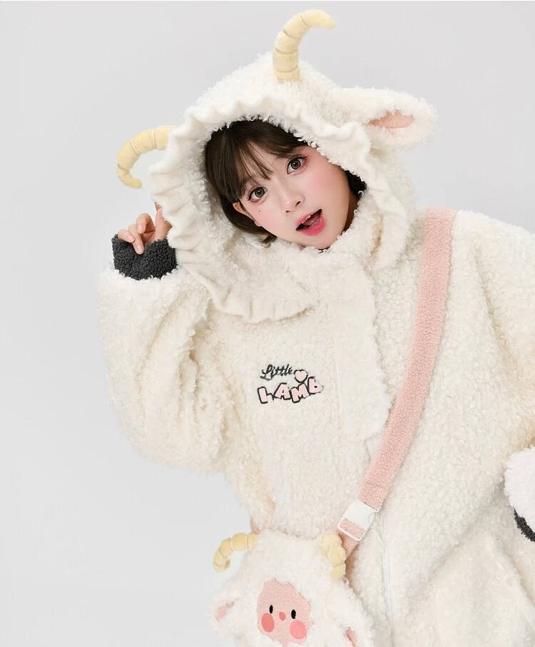 1 * Kawaii White Cartoon Little Sheep Design Hoodie