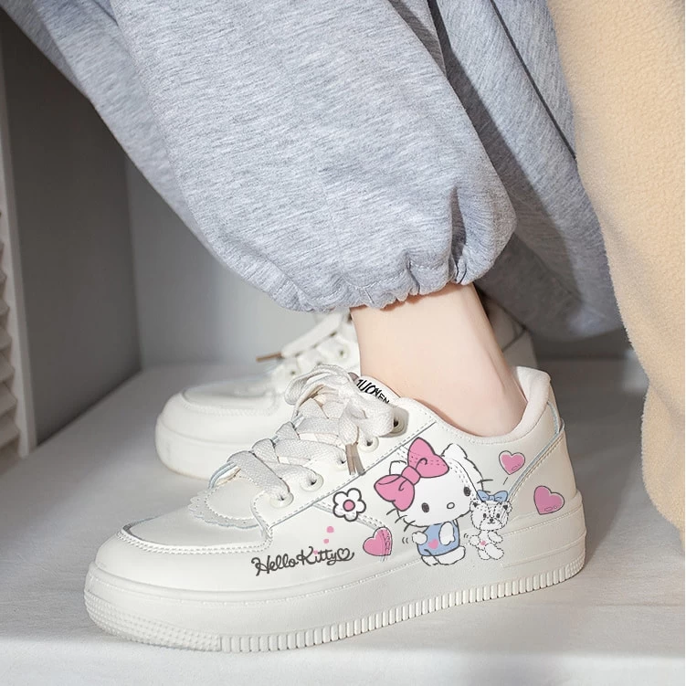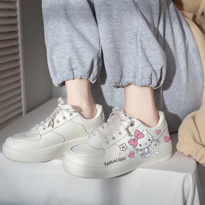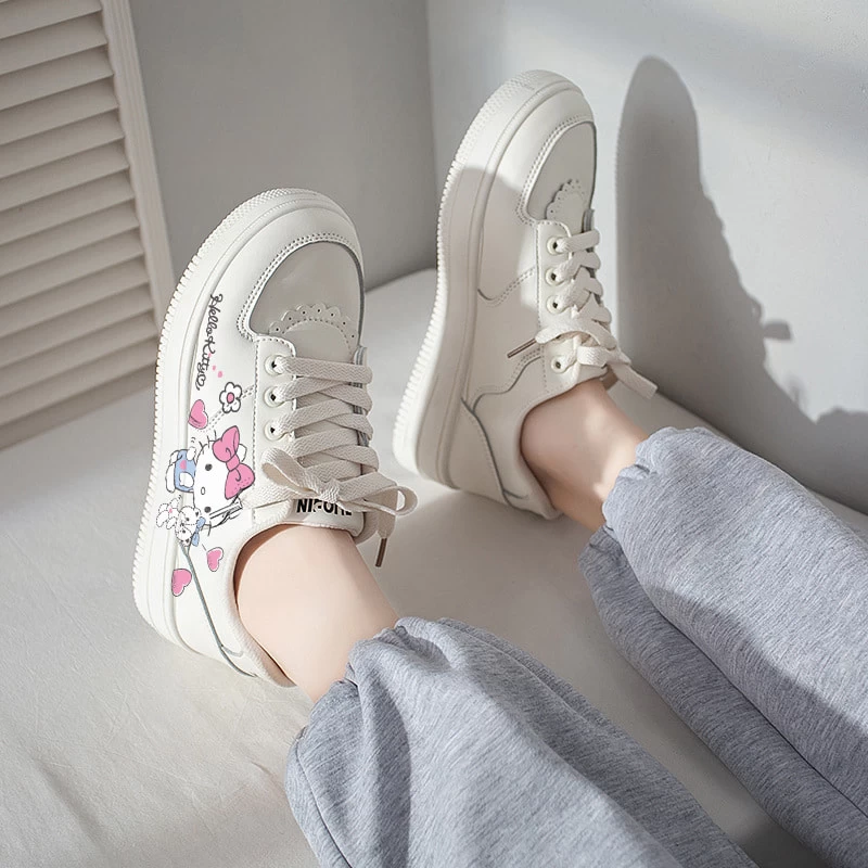 Step into a world of cuteness and comfort with our Kawaii White Hello Kitty Print All-match Sneakers. Designed for the playful yet stylish woman, these Kawaii sneakers feature an adorable Hello Kitty print that adds a whimsical touch to any casual outfit. Crafted from high-quality synthetic leather, they not only exude charm but also offer durability and breathability—perfect for those warm summer days when you want to stay cool without sacrificing style.