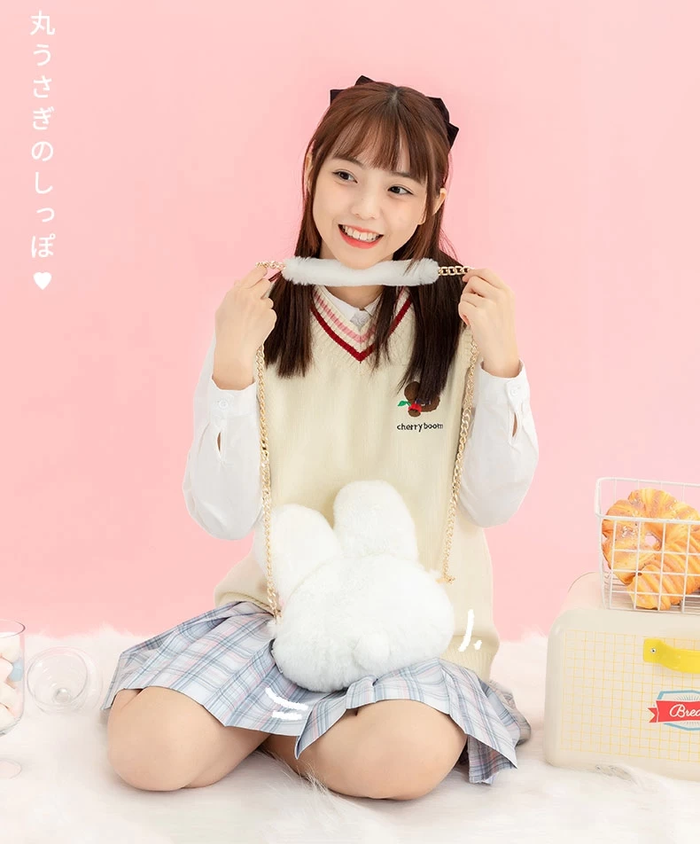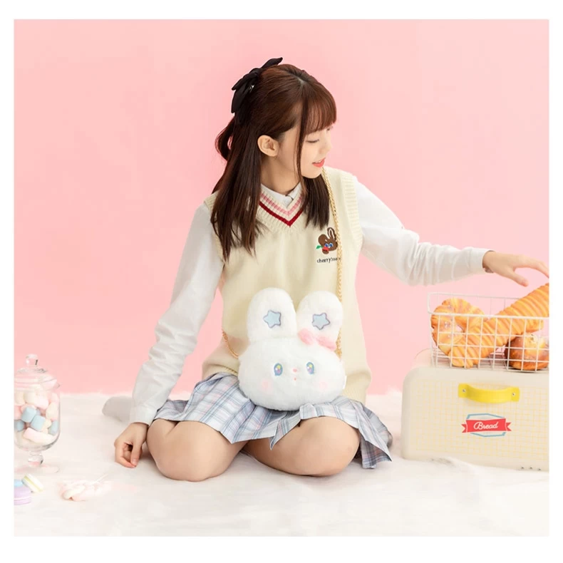 1 * Kawaii White Plush Rabbit Messenger Bag