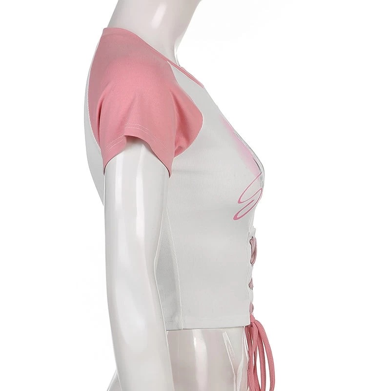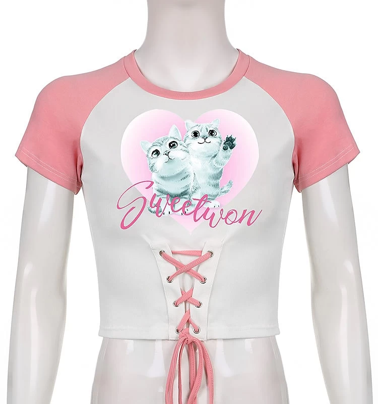 1 * Kitties Printed Lace-Up Tops