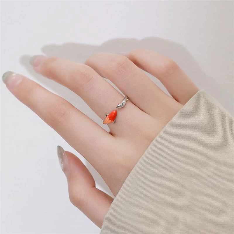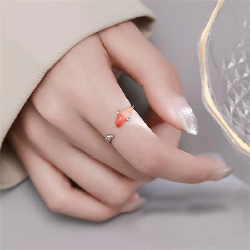 This Koi Silver Open Ring is the perfect addition to your jewelry collection. The Koi Silver Open Ring is made with 925 sterling silver and has an orange drip glaze. It is a beautiful, timeless piece that will add elegance to any outfit. The ring is also resizable, so it can be tailored to fit you perfectly.