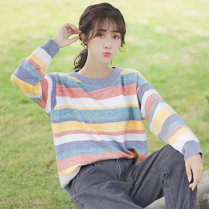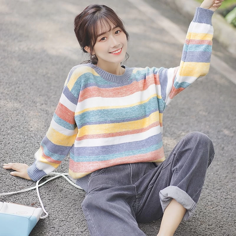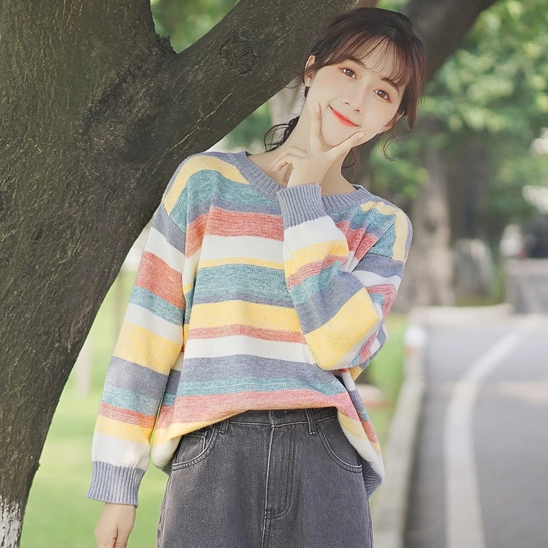 Introducing the Korean Fashion Girl All-match Striped Sweater – the perfect sweater for stylish, fashion-forward women. This sweater is perfect for Autumn and Winter and will keep you warm and comfortable all season long. The loose fit is ideal for layering over shirts or dresses, and the all-over stripes are trendy and chic. Pair this sweater with jeans, leggings, or skirts for a variety of looks that will keep you looking fashionable all season long.