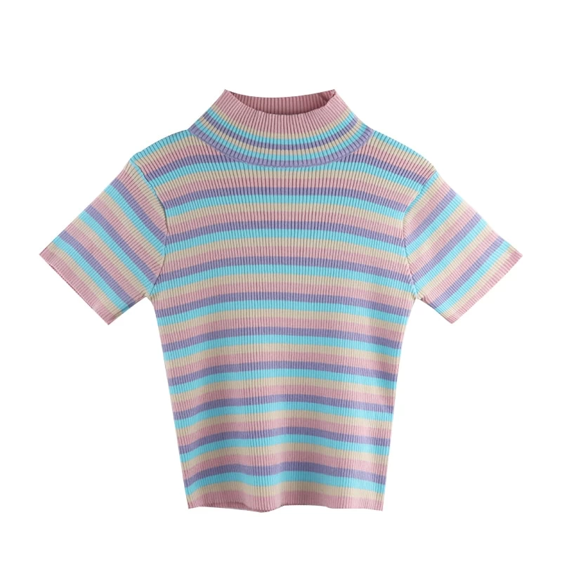 1 * Korean Fashion Sweet Rainbow Striped Short T-shirt
