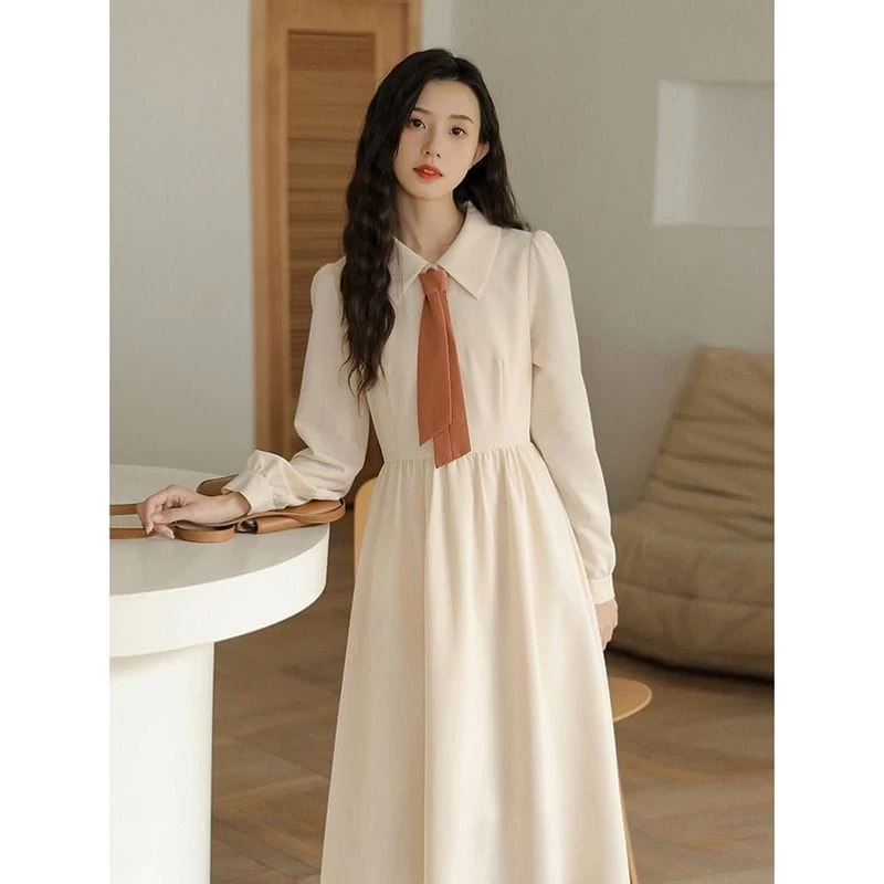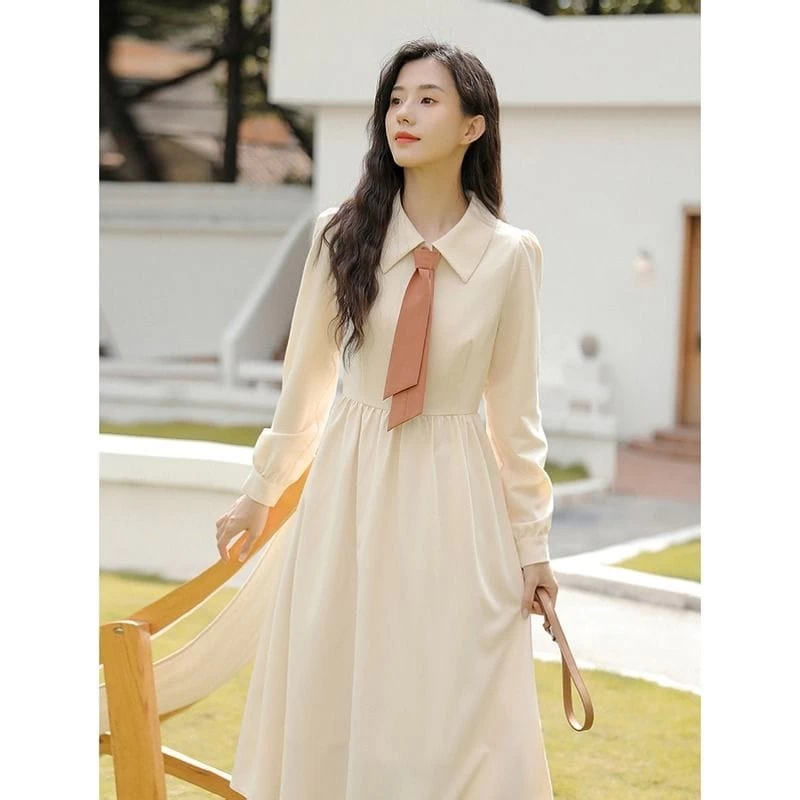 Looking for a dress that is both stylish and comfortable? This Korean Vintage Preppy Sweet Dress fits the bill! Made from a soft, breathable fabric, it features a preppy style with a sweet Mori girl twist. The elegant POLO collar and long sleeves give it a touch of sophistication, while the midi length makes it perfect for any occasion.