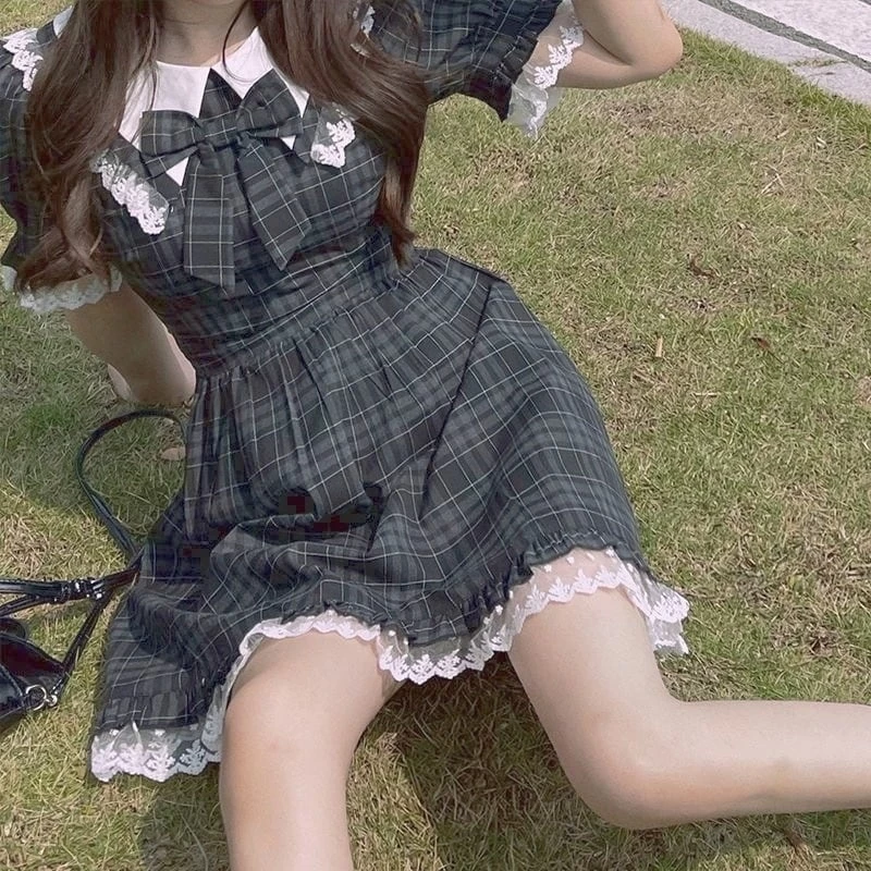 The Lolita Sweet Plaid Lace Dress is the perfect choice to wear to an event this summer. You’ll look adorable in this lace top dress, complete with a high waist cut and flared skirt. The pretty blue floral print is great for pairing with your favorite jewelry!