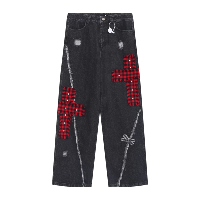 Unleash your inner rebel with our Punk Girl Style Ripped Straight Wide Leg Jeans! Made for the fearless fashionista who dares to stand out, these original Asian culture rock punk jeans are a must-have in every edgy wardrobe. Available in sizes S, M, and L with a flattering high waist design, these jeans will accentuate your curves while keeping you stylishly comfortable all day long.