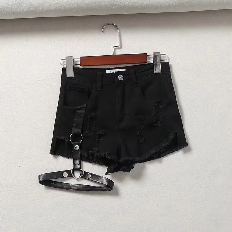 Looking for something edgy and different? Check out our Punk One-Leg Strap Shorts! These shorts come with a leg belt detail, adding an extra touch of punk rock style. They’re made of soft and comfortable denim, with ripped and frayed detailing. Perfect for summer days spent outdoors or nights spent dancing at your favorite club!