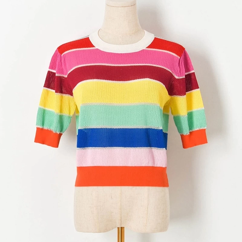 This sexy and stylish striped shirt is perfect for a day out with your friends or a date night with your significant other. The rainbow colors are fun and flirty, and the shirt is made from high-quality materials that will keep you warm and comfortable all day long.