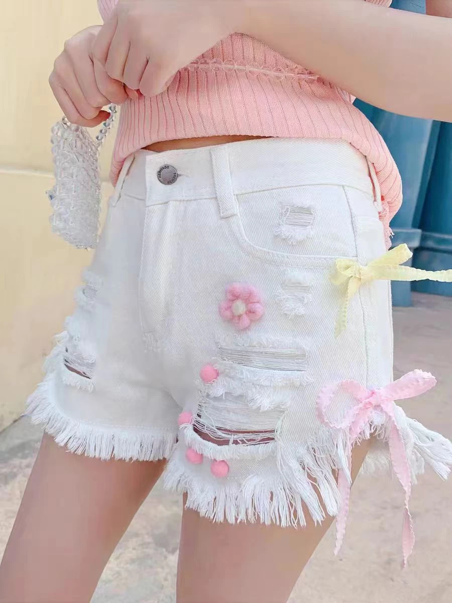 Summer is coming and your wardrobe needs a little change! You can’t go wrong with these adorable ripped denim shorts. Made of 60% cotton and 35% Polyester, they are perfect for any occasion. With distressed details on the knees, you will be sure to feel sexy all day long! These cute kawaii shorts come in one size which fits most women up to medium sized frames perfectly.
