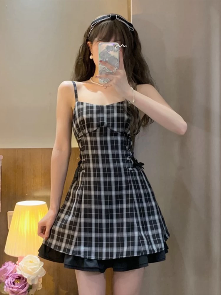 Make a statement this summer with the Summer Black Plaid Strap Waist Dress. This slim grid suspender skirt offers an artistic and modern look to help you stand out from the crowd. The stylish and flattering silhouette is designed for comfort, giving you all-day comfort without sacrificing on fashion.