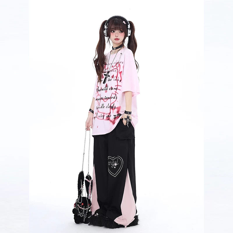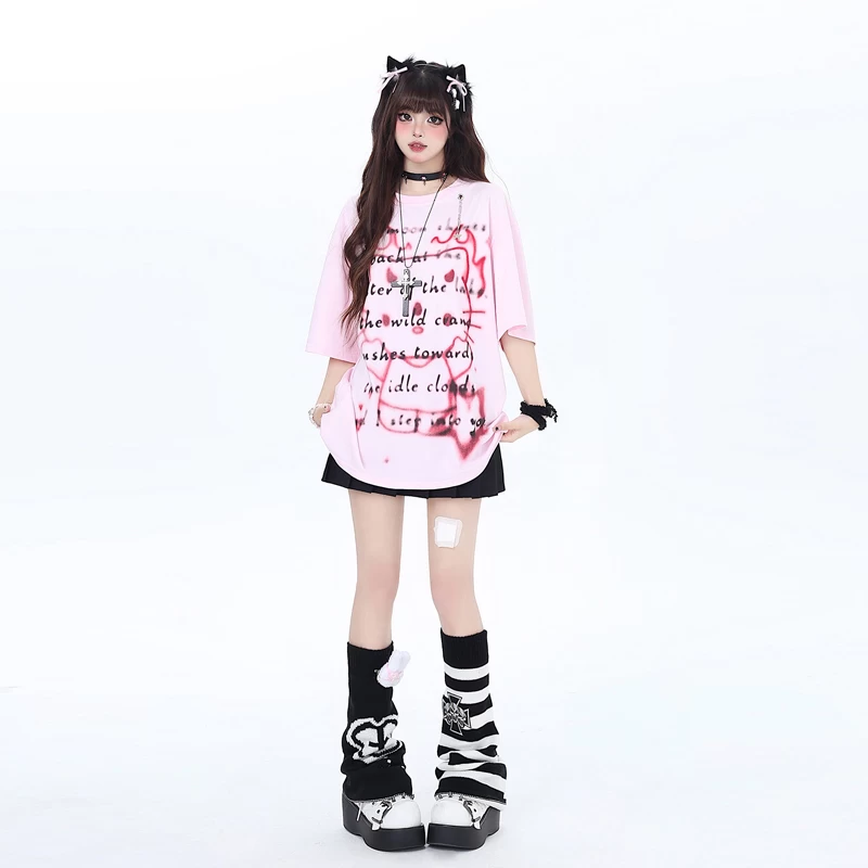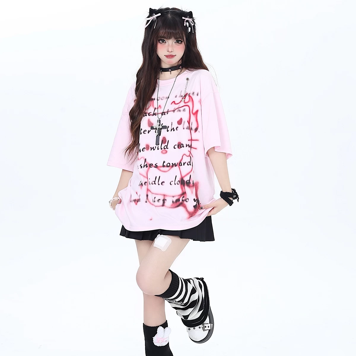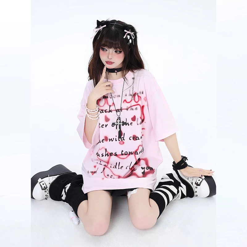 1 * Summer Dopamine Style Pink Hello Kitty Printed T-shirt