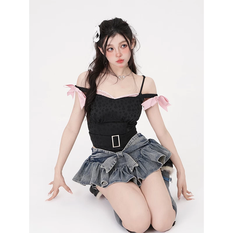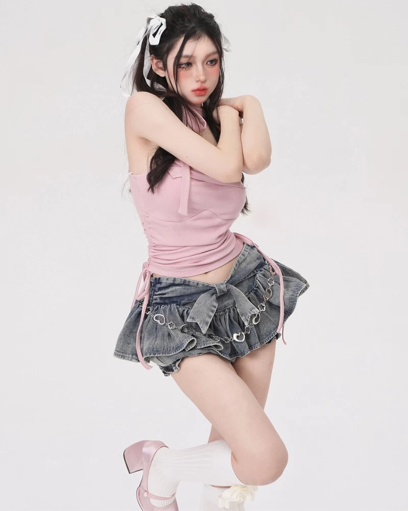 Introducing the Summer Ribbon Denim Cake Mini Skirt, the ultimate wardrobe essential for fashion-forward women this summer! Made from a blend of 75% polyester and 25% other materials, this Kawaii skirt offers unbeatable comfort and durability. The pleated design adds a touch of femininity, while the hot girl summer vibe is undeniable. Whether you’re heading to a beach party or exploring the city streets, this mini skirt will keep you looking effortlessly chic.