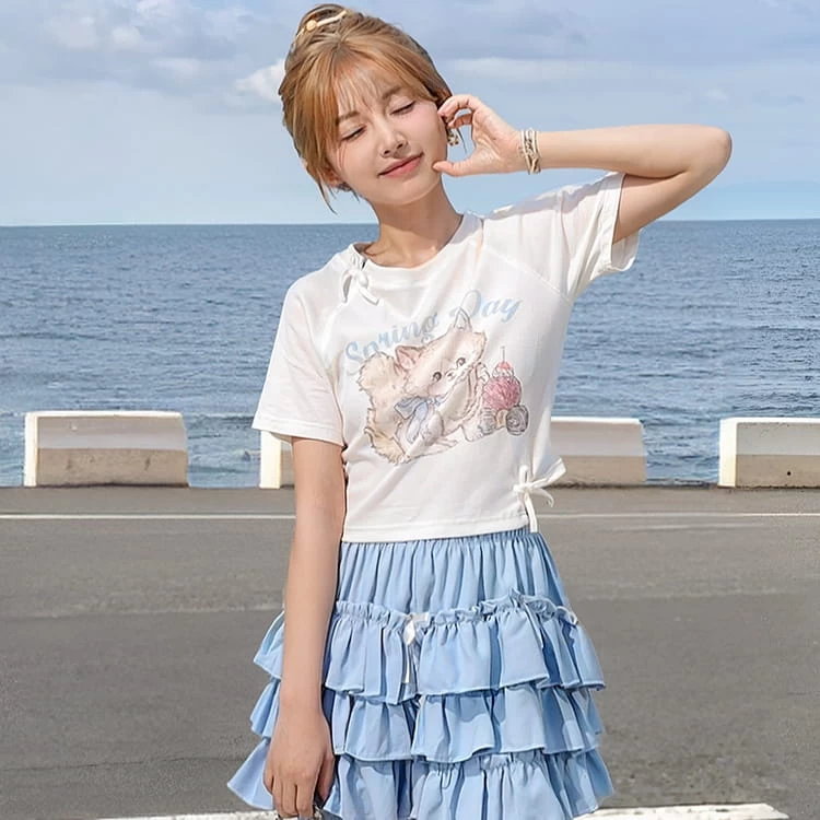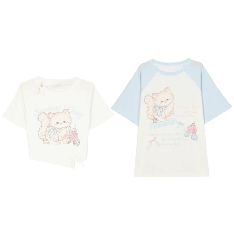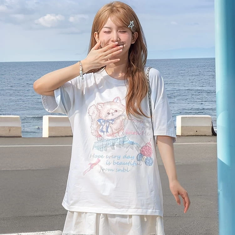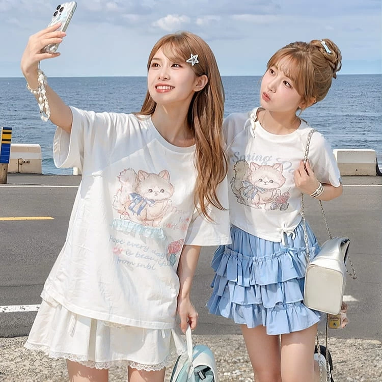 1 * Summer Soft Girl Style Cartoon Cat Print T-shirt