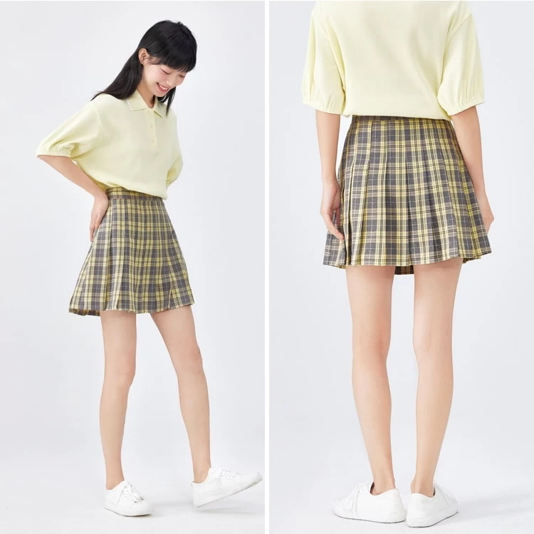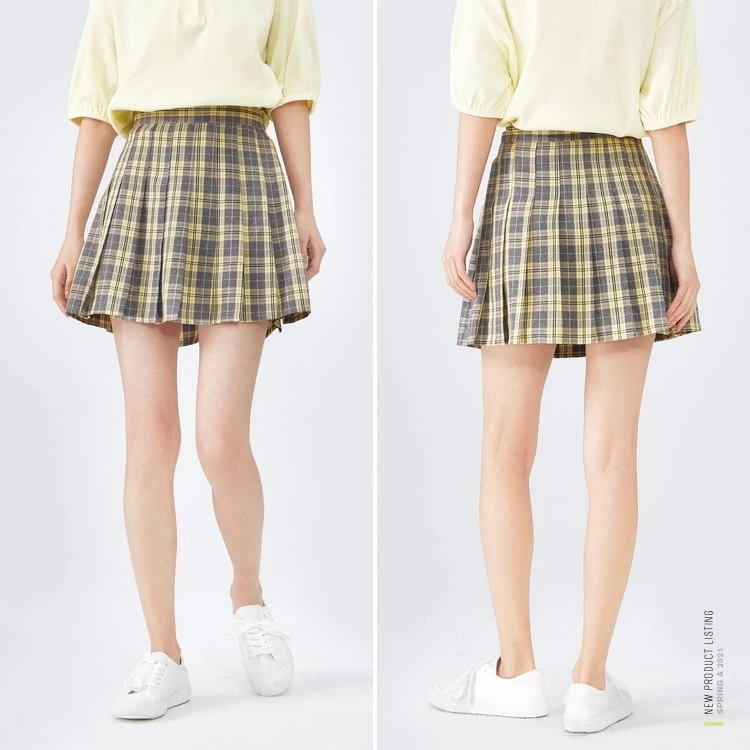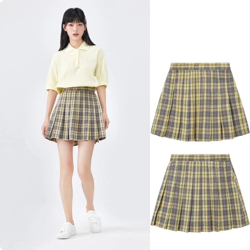 Elevate your summer wardrobe with our Summer Sweet College Style JK Plaid Pleated Skirt! This JK skirt is not just a piece of clothing but a statement of style and elegance. The vibrant yellow color and classic plaid pattern exude a youthful charm, perfect for embracing the sunny days ahead. Its A-line silhouette and pleated design offer a flattering fit that accentuates your natural waistline, making you look effortlessly chic.