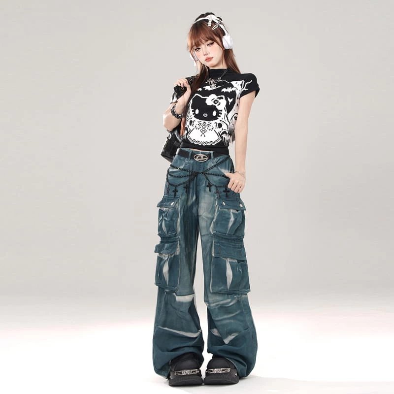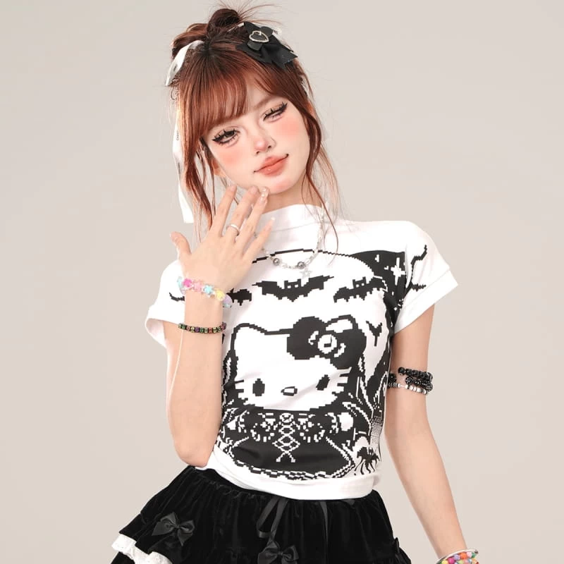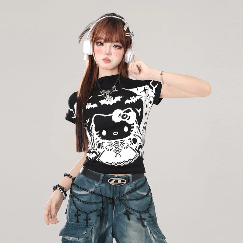 1 * Summer Sweet Cool Style Graffiti Hello Kitty Print Slim T-shirt