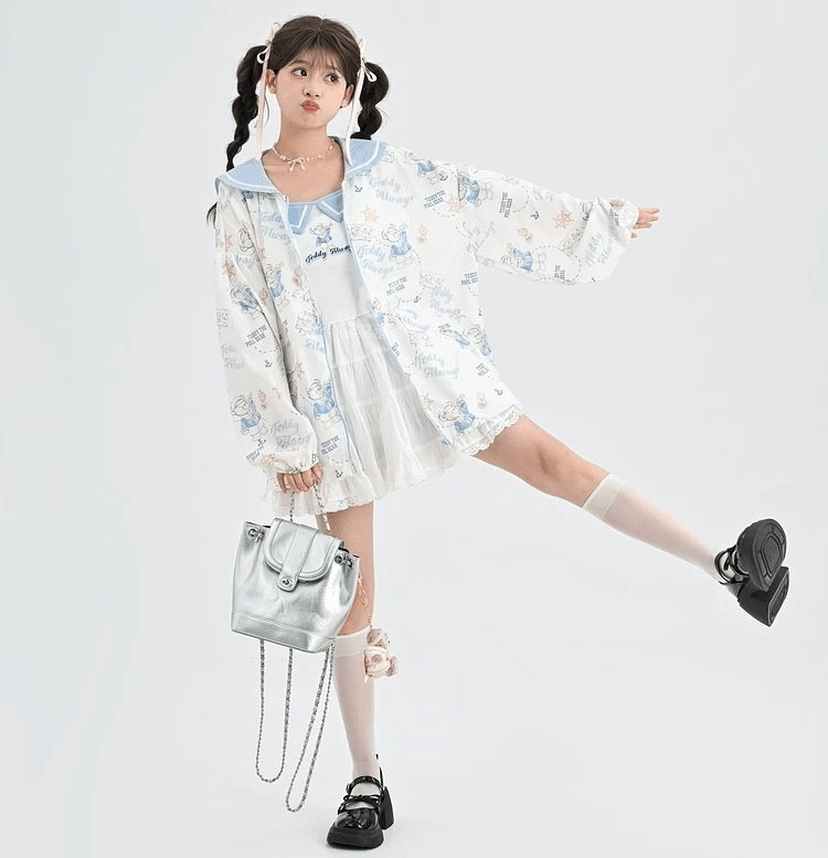 1 * Summer Sweet Girl Style Cartoon Navy Bear Print Vest