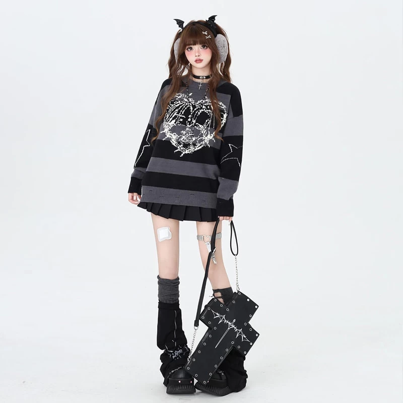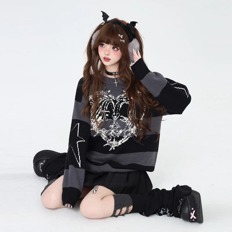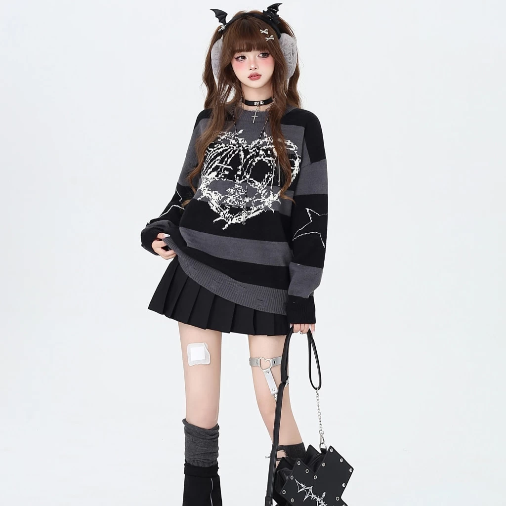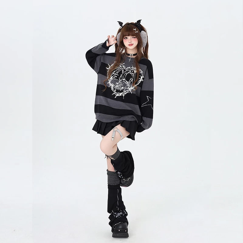 Embrace your inner cool girl with our Sweet Cool Girl Style Love Embroidery Knitted Pullover Sweater, a must-have addition to your autumn and winter wardrobe. This retro-inspired piece features vibrant contrast stripes and charming love star embroidery, blending playful subculture aesthetics with timeless comfort. Crafted from high-quality knitted material, this sweater not only provides warmth but also ensures a soft and cozy feel against your skin, making it perfect for layering on cooler days.