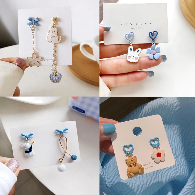 These cute and playful Animal Earrings are perfect for any animal lover! The dangling pendants are in the shape of adorable cartoon animals, with bright colors and charming details. The asymmetrical design is unique and trendy, and the bow adds a touch of femininity. These Kawaii earrings are lightweight and comfortable to wear, making them perfect for everyday use.