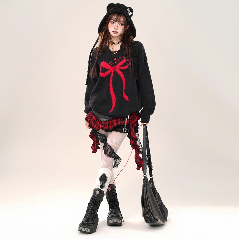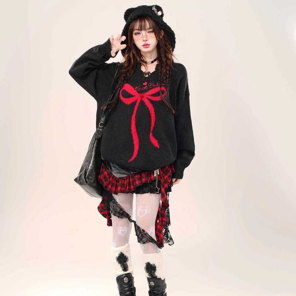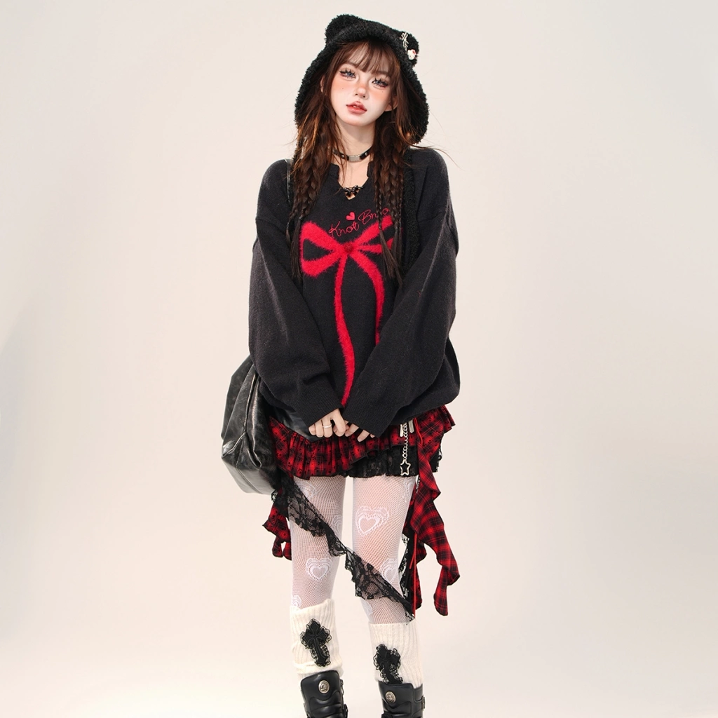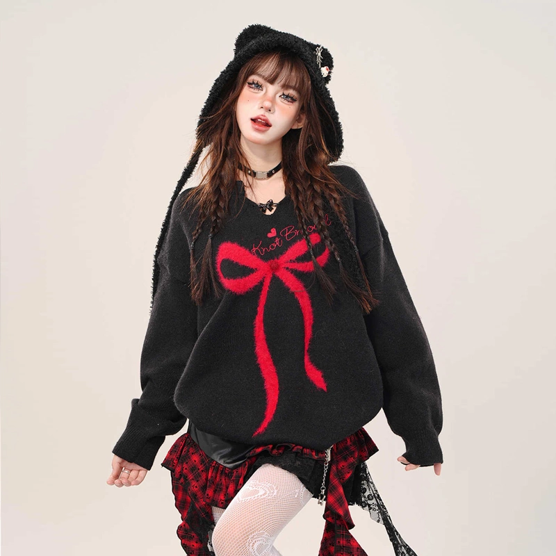 Indulge in the sweet charm of early autumn with our Sweet Girl Style Bow Embroidered Sweater. This beautifully crafted knitted pullover seamlessly combines comfort and style, making it a must-have addition to your wardrobe. The delicate bow embroidery adds a touch of whimsy, perfectly complementing the relaxed silhouette for an effortlessly chic look.