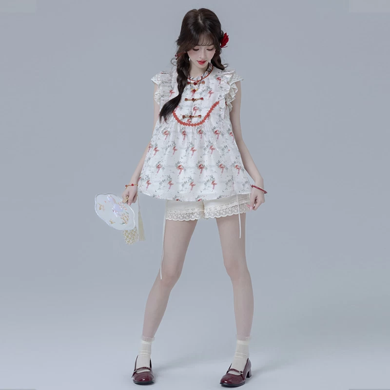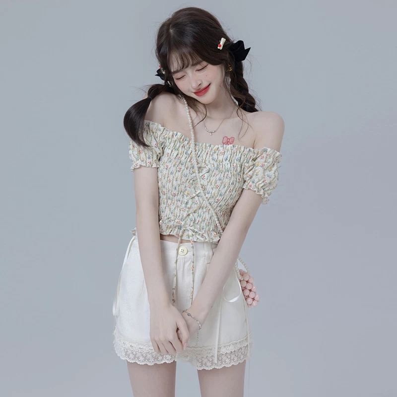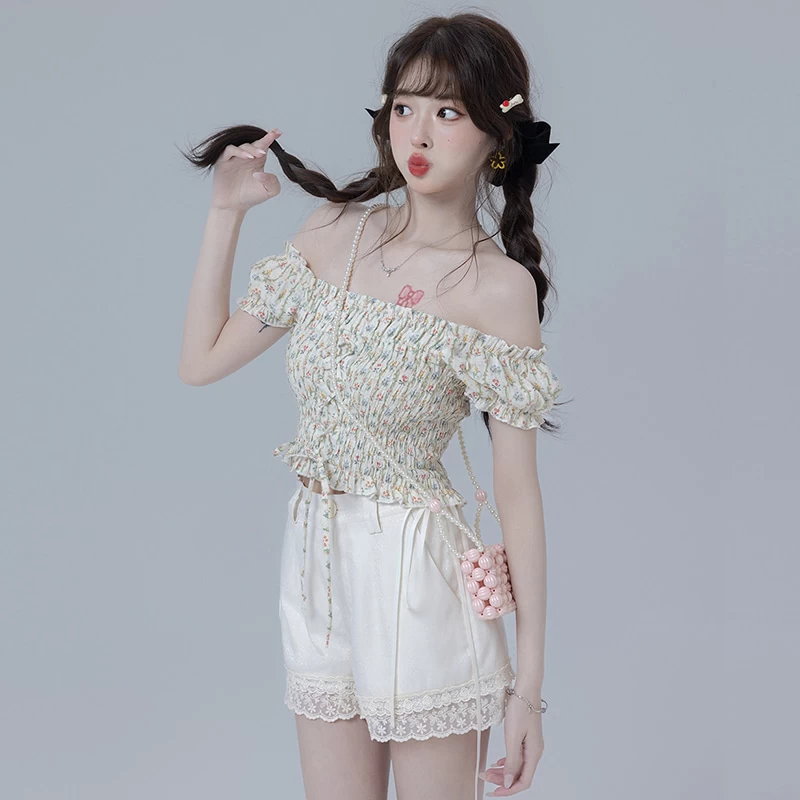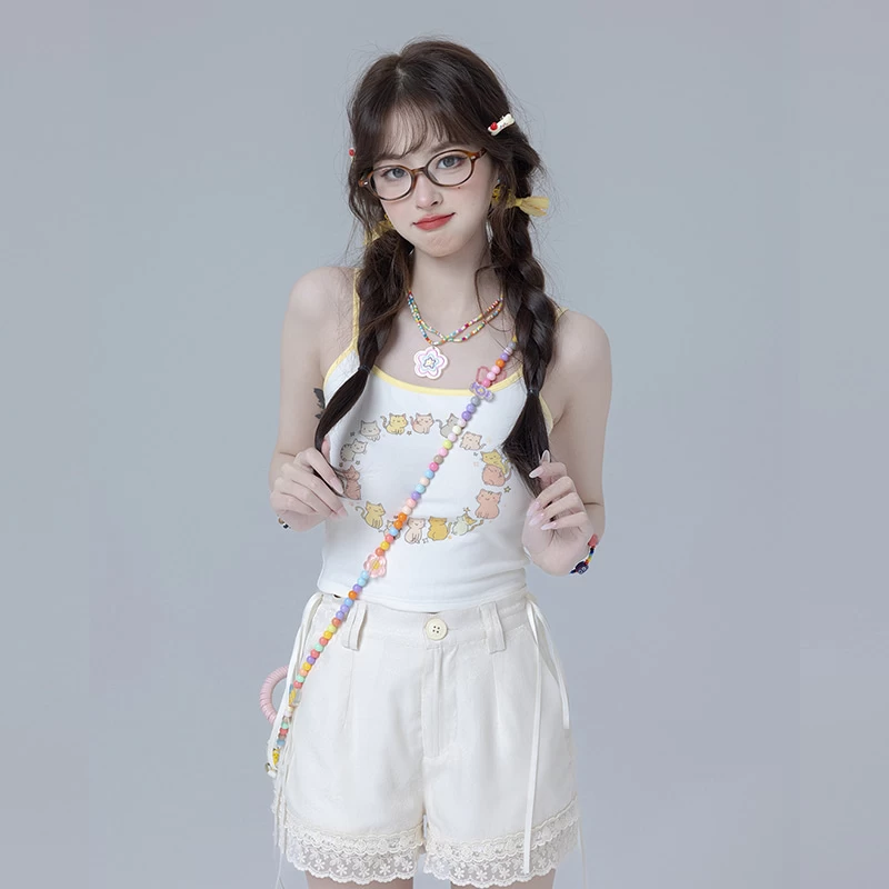 1 * Sweet Girl Style Dark Pattern White Shorts