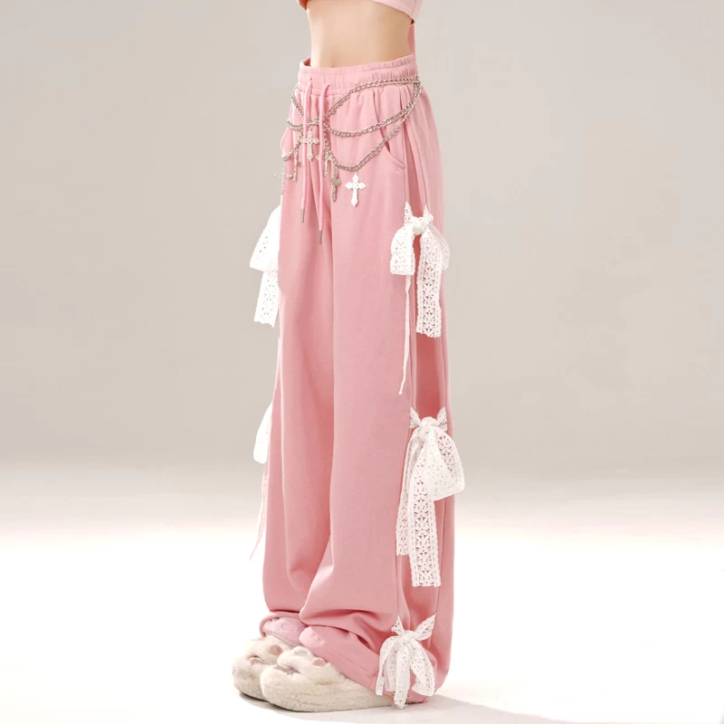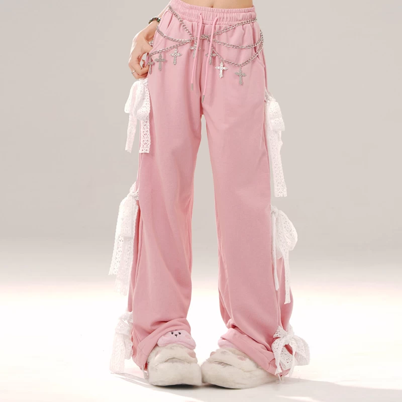 1 * Sweet Girl Style Pink Bow Straight Pants