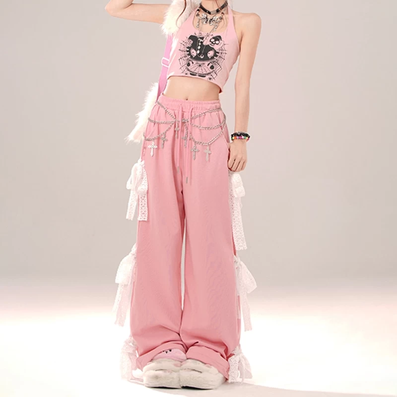 Step into effortless elegance with our Sweet Girl Style Pink Bow Straight Pants, designed to make a statement wherever you go. These casual wide-leg pants not only offer a flattering silhouette but are also perfect for adding a touch of femininity to your summer wardrobe. With their chic bow accent and versatile long length, these pants effortlessly transition from daytime outings to evening gatherings.