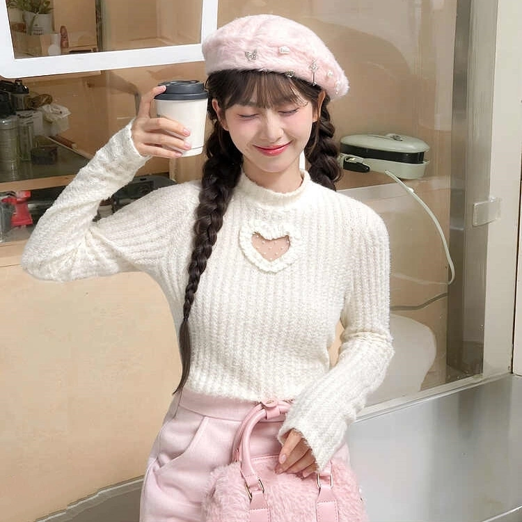 1 * Sweet Girl Style White Slim Heart Hollow Bottoming Shirt
