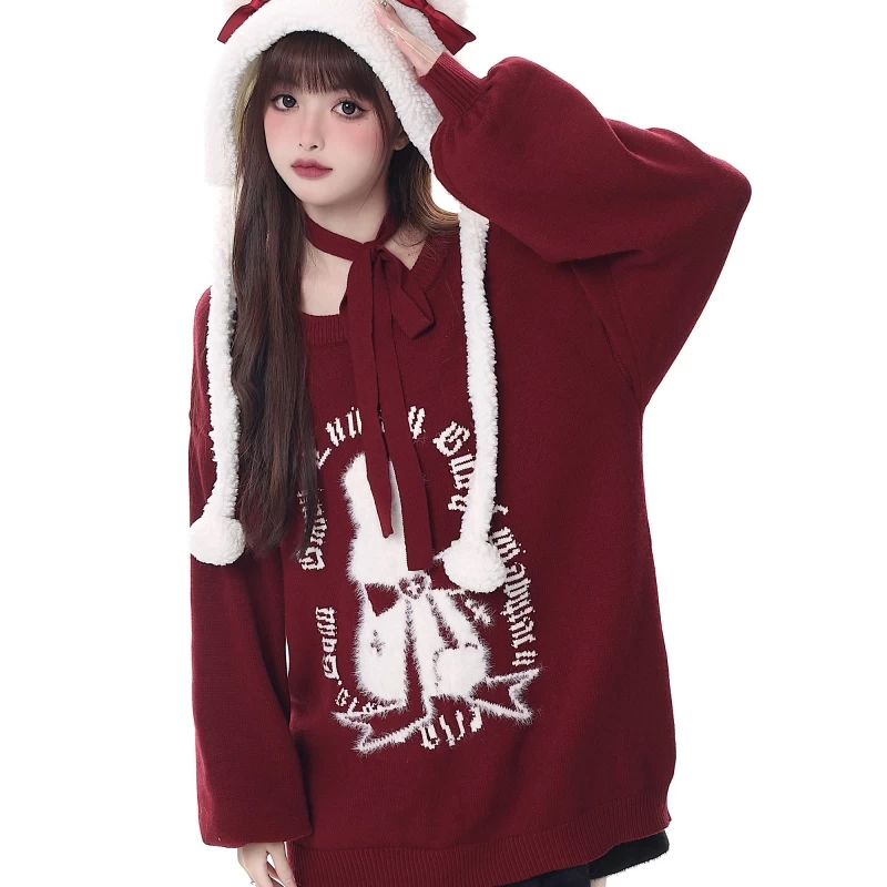 Begin your holiday season in style with our Sweet Girly Christmas Style Lantern Sleeve Sweater. This stunning piece encapsulates the joyous spirit of Christmas with its distinctive design and delightful color scheme. The playful interplay of black, burgundy, and winter white adorning this original pullover lends a festive charm that’s sure to turn heads.