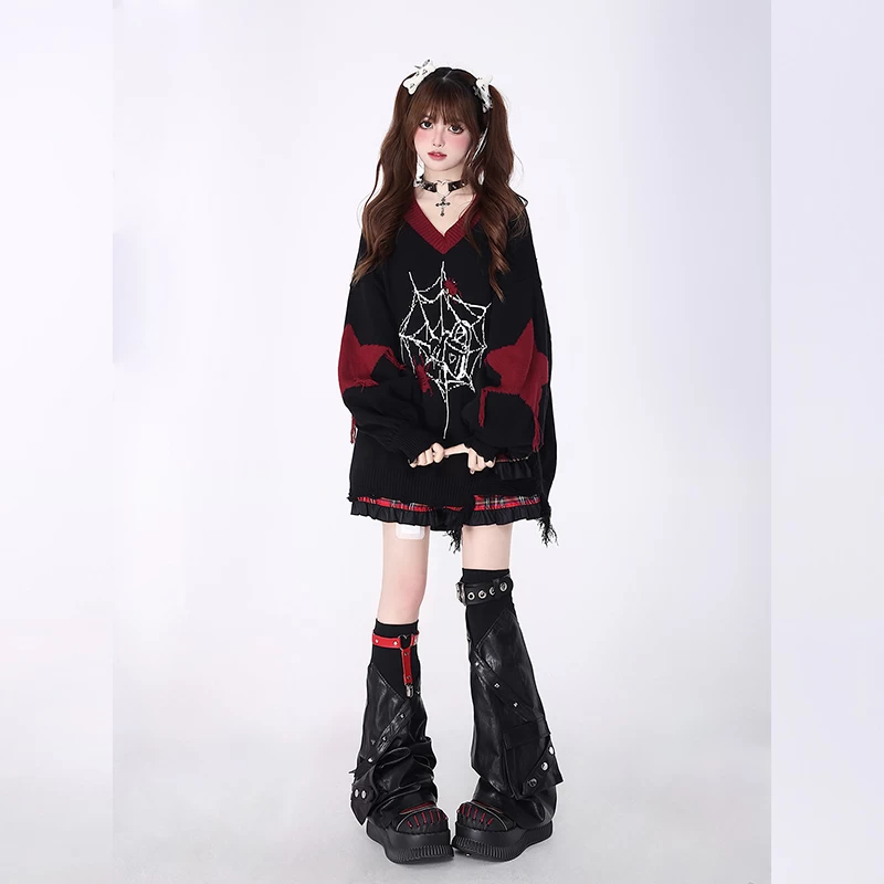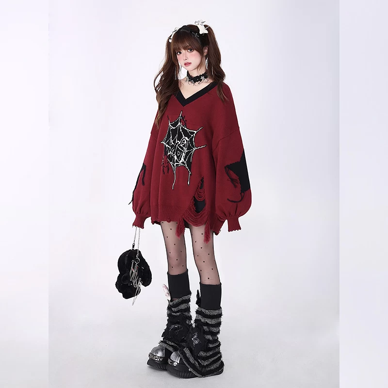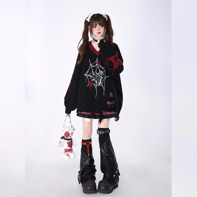 Ignite your style quotient with our Sweet Girly Style Black and Red V-neck Sweater. The trendy Asian-inspired design, coupled with a versatile color scheme of dark red and black, is bound to set you apart from the crowd. This original V-neck sweater, available in sizes S, M, effortlessly merges street-style aesthetics with sweet feminine charm.