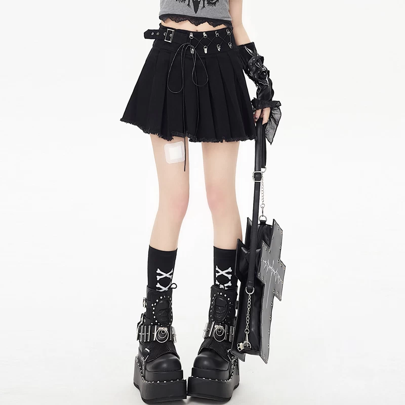 Elevate your wardrobe with the Sweet Girly Style Irregular All-match High-Waisted Pleated Skirt, a versatile piece that exudes charm and sophistication. This unique skirt combines a sweet girly style with an edgy irregular niche street flair, making it perfect for those who love to stand out. The high-waisted design flatters the figure and adds a touch of sweetness to any outfit.