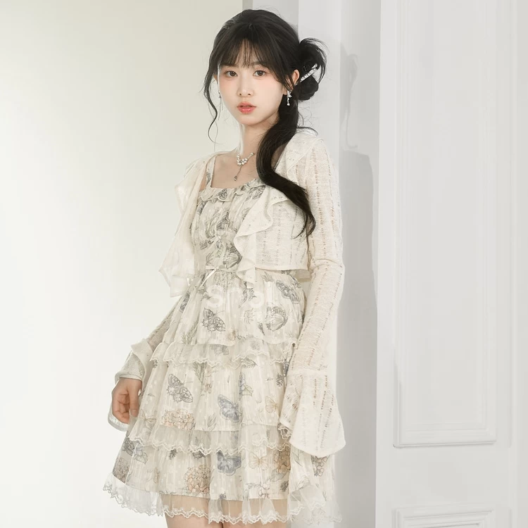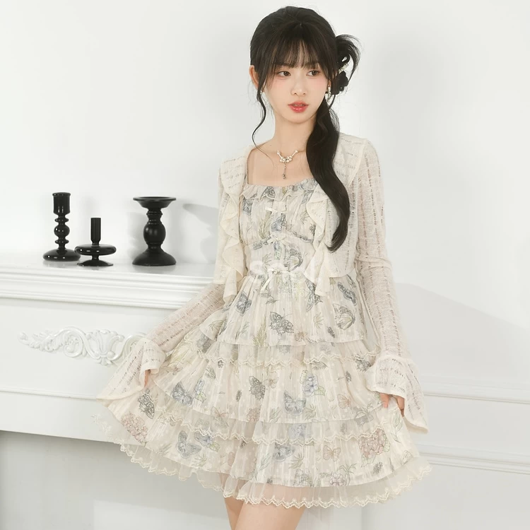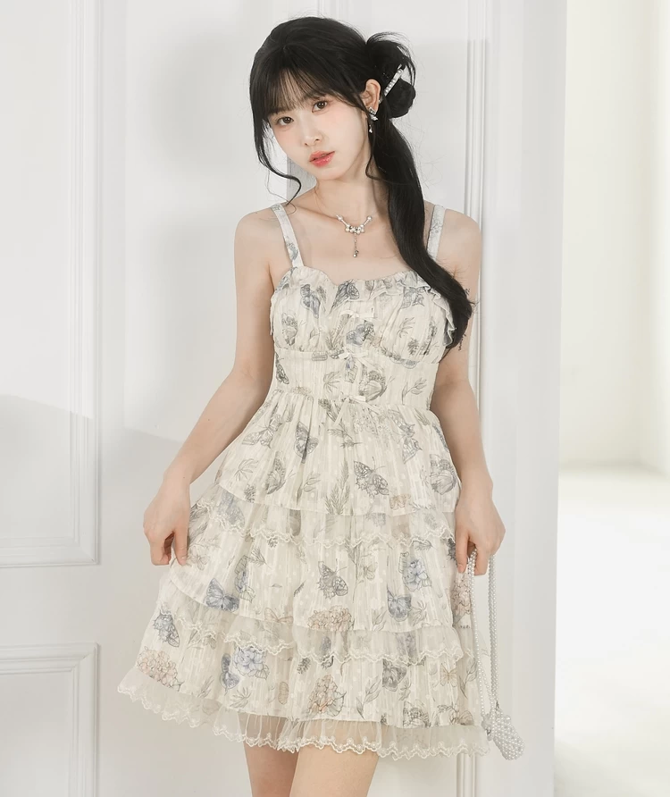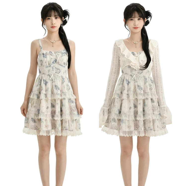 Elevate your wardrobe with our charming Sweet Girly Style Lace Patchwork Suspender Dress – the perfect fusion of elegance and playfulness. This original lace patchwork butterfly print cake dress suspender dress exudes a sweet and feminine vibe that is sure to turn heads wherever you go. Crafted with precision, this skirt features intricate details such as printing, lace accents, an invisible zipper for seamless closure, a dainty bow embellishment, and a flattering high waist design that accentuates your silhouette beautifully.
