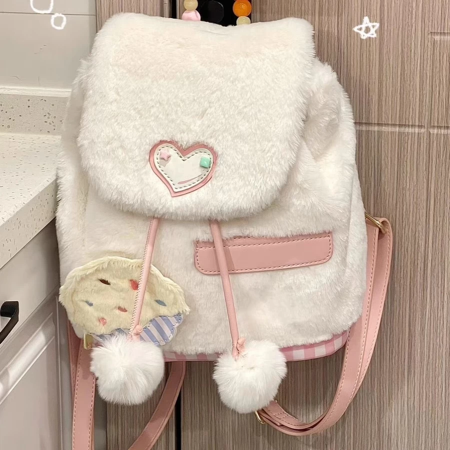 Fall in love with the latest trend of chic and adorable accessories with our Sweet Girly Style Plush Backpack! Embrace your inner fashionista and stand out from the crowd with this Autumn and winter furry bag, designed to keep you stylish all year round. The 2024 new Sweet Girl fashion plush backpack is more than just a bag – it’s a statement piece that adds flair to any outfit. Its versatile design makes it perfect for students looking to stay on-trend while also being practical for school or everyday use.