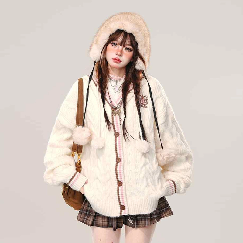 Elevate your autumn and winter wardrobe with our Sweet Korean Style Knitted Hooded Sweater, designed for those who cherish comfort without compromising on style. Inspired by the laid-back aesthetics of Korean comic culture, this sweater embodies a sweet yet relaxed vibe that is perfect for casual outings or cozy days at home.