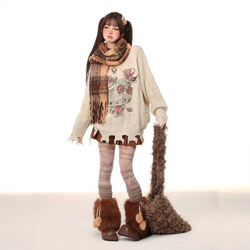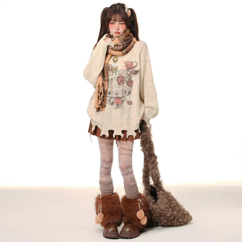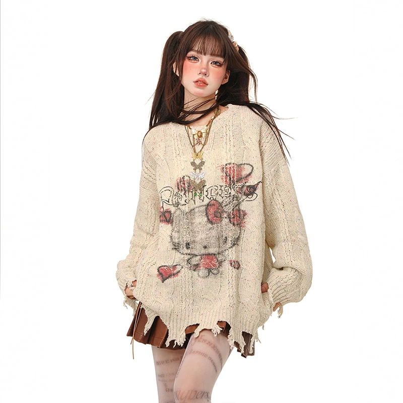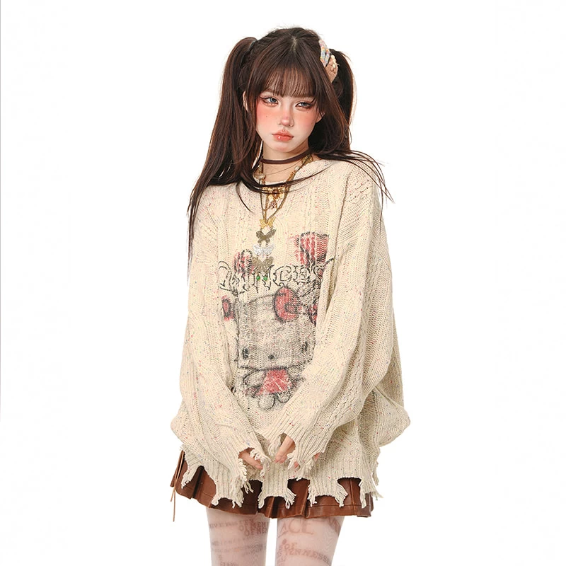 Embrace your inner soft girl with our Sweet Lazy Soft Girl Style Pink Hello Kitty Embroidery Loose Sweater, the ultimate blend of comfort and cute! This charming pullover features a delightful round neck and an Kawaii Hello Kitty embroidery that brings a playful touch to your autumn wardrobe. Crafted from a luxurious mix of 70% polyester fiber and 30% other materials, it offers warmth while remaining lightweight—perfect for those crisp early autumn days.