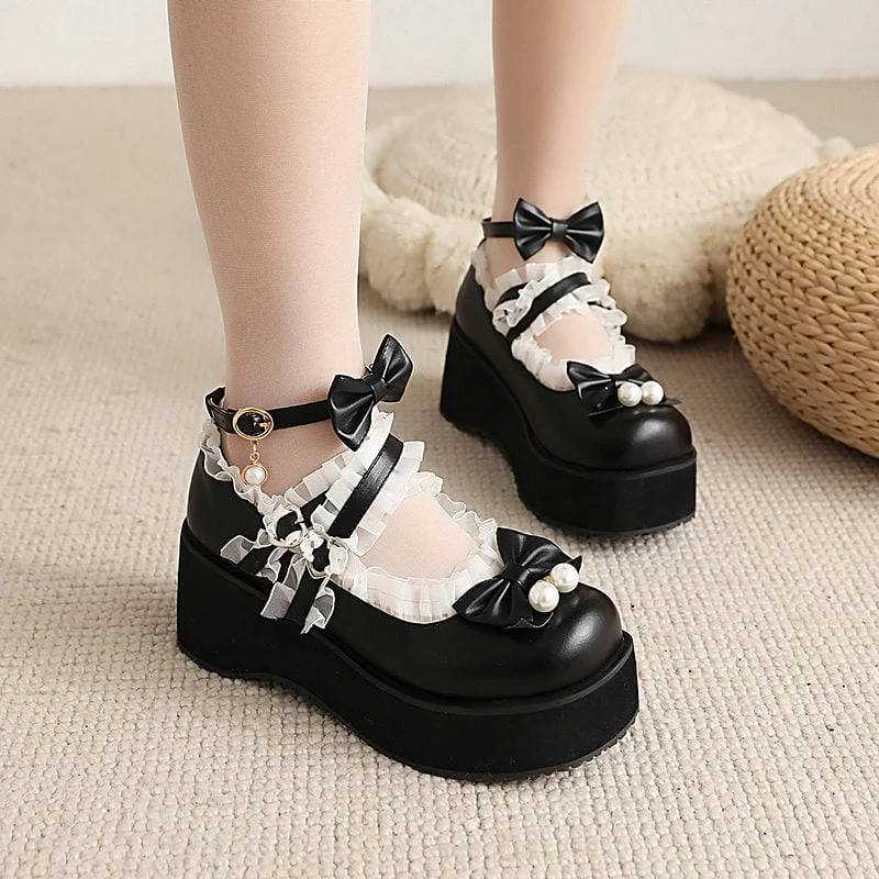 These Sweet Lolita White Bows Pumps are perfect for any Lolita or cosplay outfit! The thick soles make them great for a variety of events, and the lace straps add a touch of elegance. They’re also perfect for dressing up any everyday outfit.