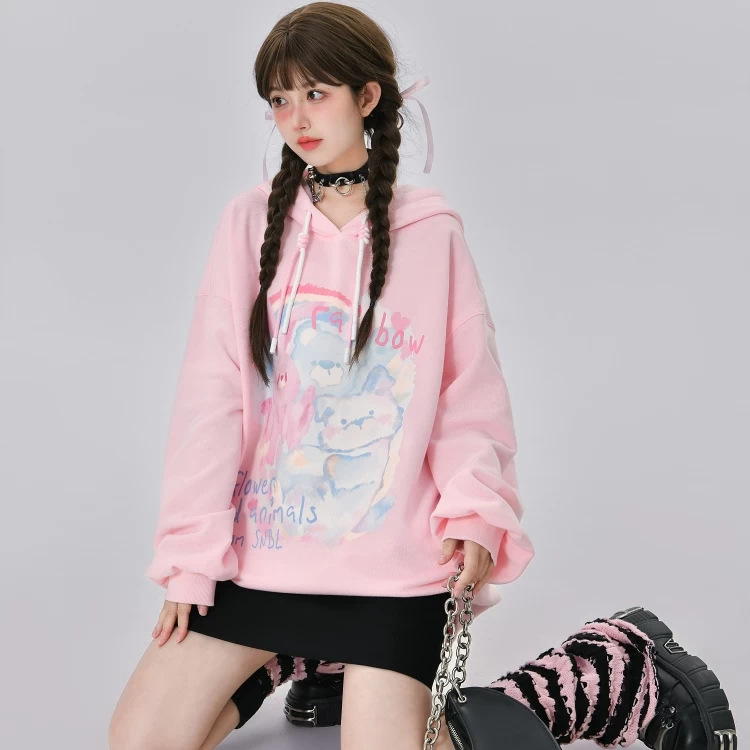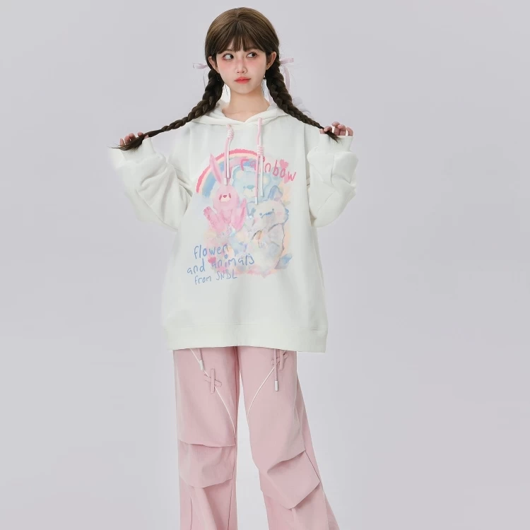 Get ready to embrace your inner sweetness with our Sweet Loose Pink Cartoon Bunny Print Hoodie. This adorable hoodie is perfect for those who love all things cute and girly. Made from a soft and cozy fabric blend, this Kawaii hoodie will keep you warm and stylish all season long. The pink and white design features a cartoon bunny print on the front, adding a playful touch to any outfit. Available in sizes S, M, and L, this Pink hoodie is designed to be loose-fitting for ultimate comfort. Whether you’re heading out for a casual day or just lounging around at home, this Sweet Loose Pink Cartoon Bunny Print Hoodie is the perfect addition to your wardrobe.