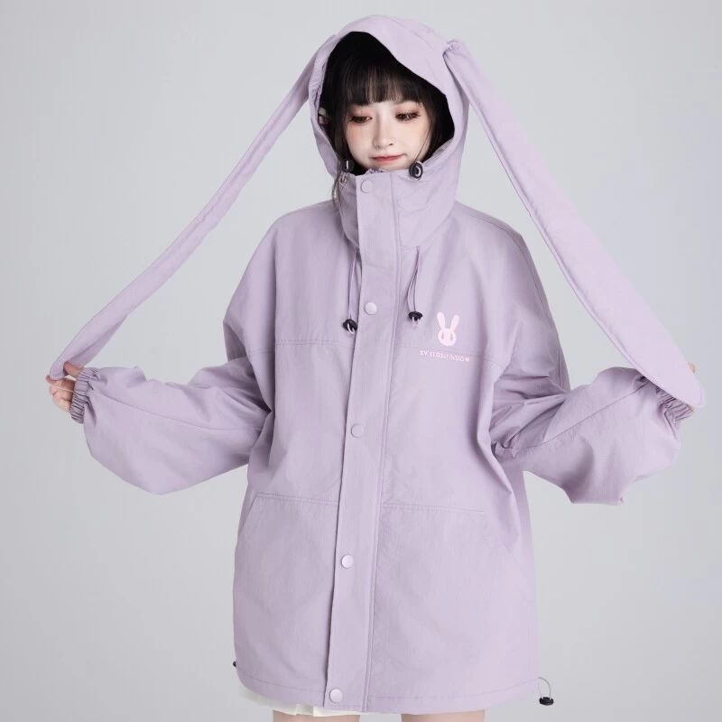 Embrace your inner child with the Sweet Style Pink Bunny Ears Windproof Jacket. This incredibly adorable jacket, designed for women and available in sizes XS to L, will quickly become your ultimate fashion statement for spring and autumn of 2023. The design leans into playful cuteness with fluffy bunny ears on the hood just exuding charm while its pink hue adds a subtle touch of femininity.