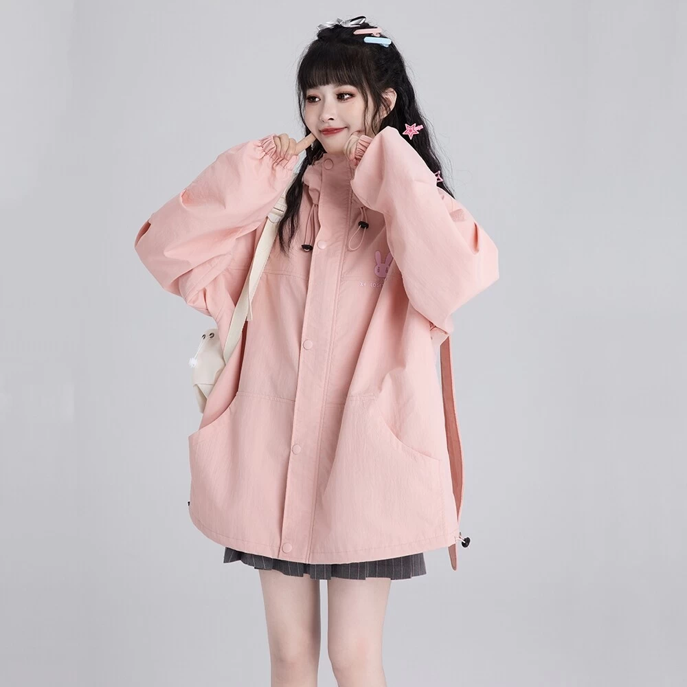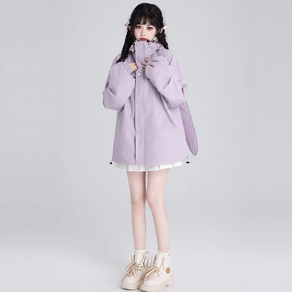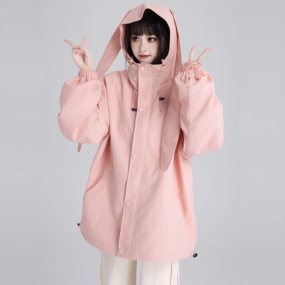1 * Sweet Style Pink Bunny Ears Windproof Jacket