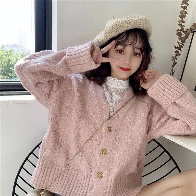 1 * Sweet Wavy-edge Kintted Loose Cardigans