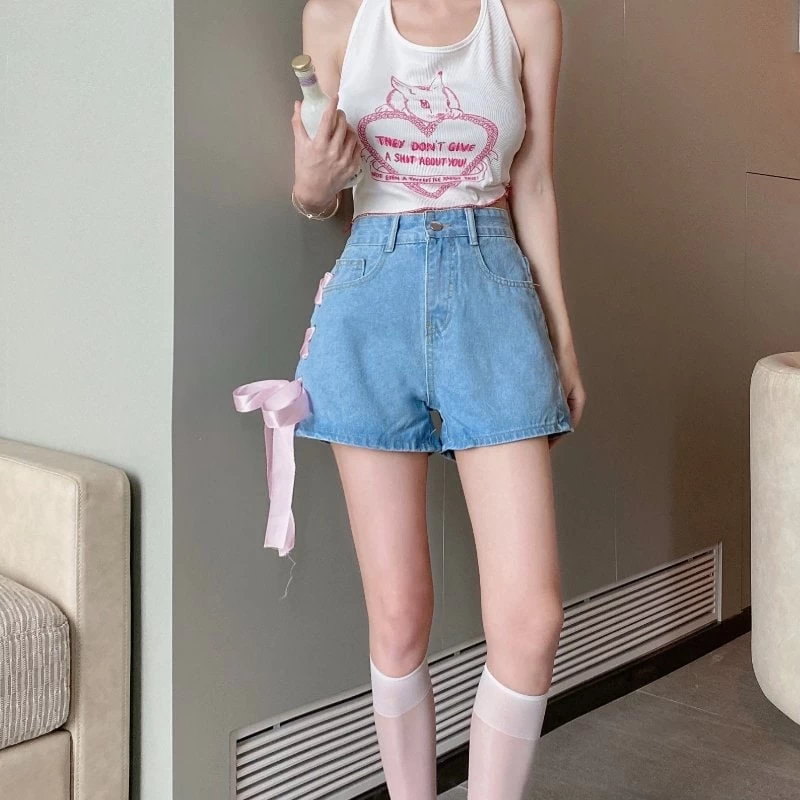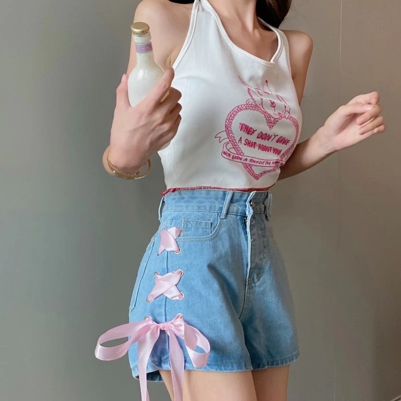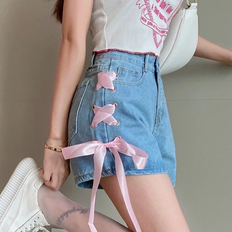 These Vintage High-waisted Lacing-up Denim Shorts are the perfect addition to your summer wardrobe! Made from high-quality denim, they’re both stylish and comfortable. The lacing-up detail on the front adds a touch of unique flair, while the loose fit makes them perfect for hot summer days.