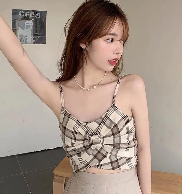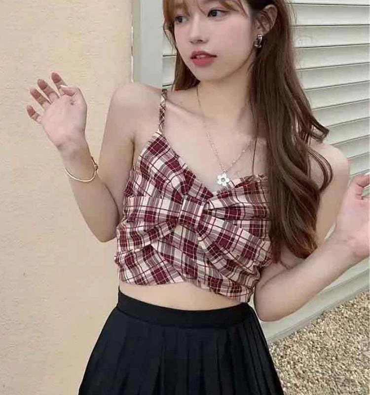 This Vintage Plaid Tank Top is the perfect combination of sexy and stylish. The plaid print is unique and adds personality, while the tight fit and V-neck show off your curves. The bow tie detail at the neck makes this top stand out from the crowd, and the short length is perfect for summer weather. Made from high-quality fabric, this top is sure to become a favorite in your wardrobe.