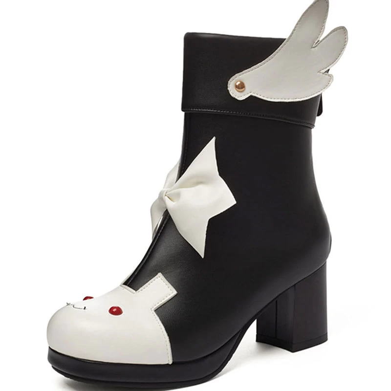 Step up your style game with these Winged Bunny Booties. The fuzzy bunny ears, bow tie, and chunky heels make them perfect for any Lolita cosplay fashion look. They’re also ideal for winter, with a soft faux fur lining to keep your feet warm.