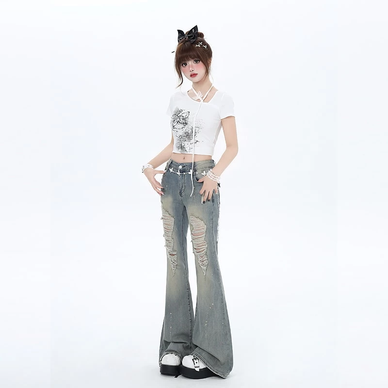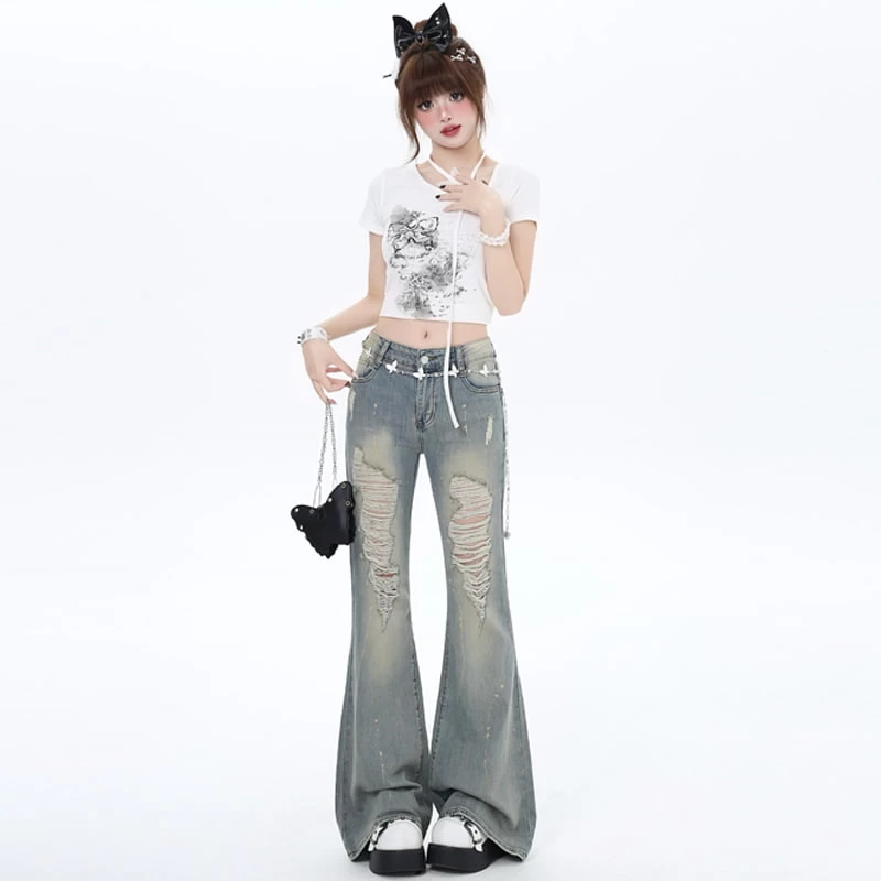 1 * Y2K Style High Waist Slim Fit Flared Jeans